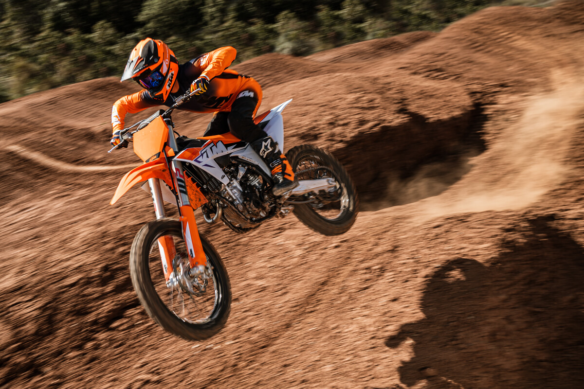 Het enige dat nodig is, is een harde, snelle ruk in een leemachtige berm om te weten dat de 2023 KTM 125 SX een serieuze kanshebber is in de 125 cc-race. Niet alleen heeft de ‘Ring-ting-ting’ een revival met brandstofinjectie gekregen, maar de hele motorfiets profiteert ook van toonaangevende ontwikkelingen aan alle kanten. De 2023 KTM 125 SX, met onderscheidingen als leider op het gebied van 2-takt motorcross-innovatie in het moderne tijdperk, verslaat simpelweg de rest van de 125 cc-klasse. Het enige dat u hoeft te doen, is de starter prikken, gas geven en laten scheuren.